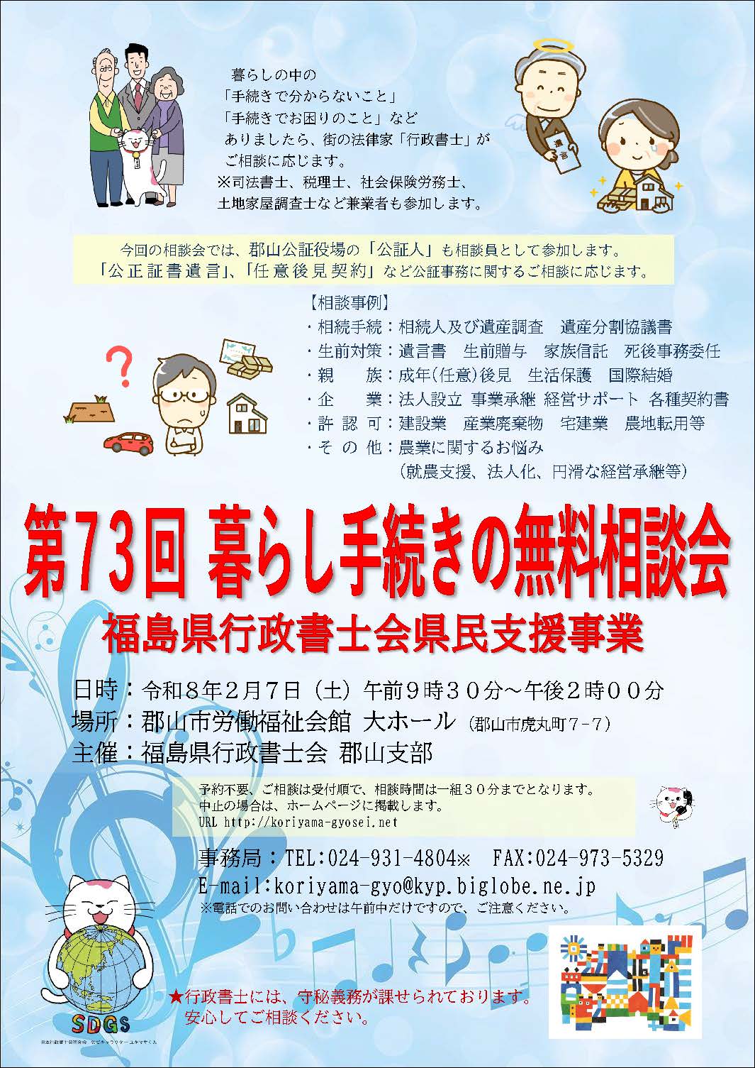 令和8年2月7日(土)「第73回暮らし手続きの無料相談会」を行います。