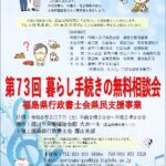 2026年1月13日 / 最終更新日時 : 2026年1月13日 広報部 イベント情報令和8年2月7日(土)「第73回暮らし手続きの無料相談会」を行います。 日時:令和8年2月7日(土)9時30分から14時00分 場所:郡山市労働福祉会館 大ホール(郡山市虎丸町7-7) 暮らしの中の「手続きで分からないこと」「手続きで困っていること」 「行政書士」が、ご相談に応じます。 今回 […]